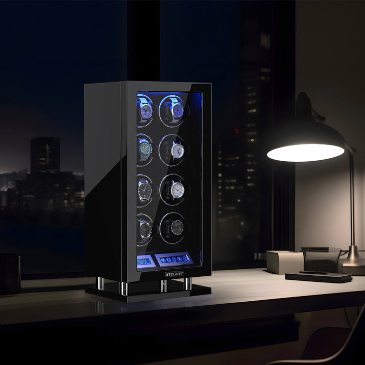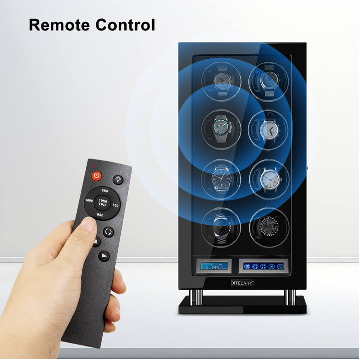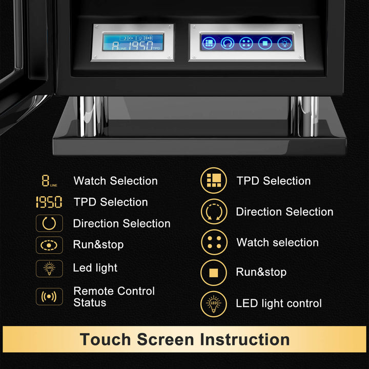 4. LCD Touch Screen Display & LED backlight: LCD touch screen control allows you to set each winder to the desired settings for your watch. And with a remote control that can easily control the watch winder at anytime. The watch winder has built in LED lights, your watches will look especially beautiful in the dark.