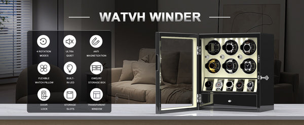 - Einzigartiges Design : Die funktionalen Eigenschaften eines traditionellen Uhrenbewegers werden durch einen auffälligen, perspektivischen Uhrenhalter zur Präsentation Ihrer Uhren ergänzt. Diese unvergleichlich innovative Uhrenbox mit innovativem Design eignet sich perfekt als Blickfang in Ihrem Zuhause oder Geschäft.